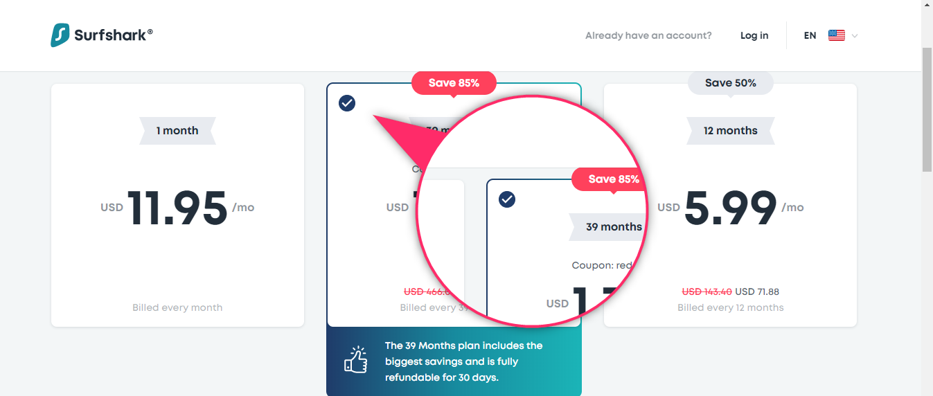 Note: This deal has a limited of time of use, the Surfshark VPN provider could close the discount at any time.
